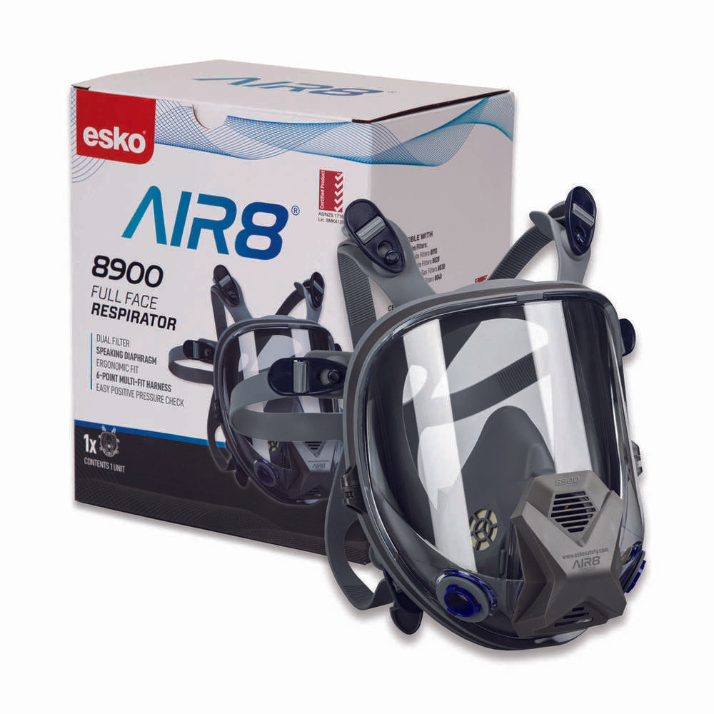 Esko 8900 full-face respirator, drawstring storage bag, 2 x 805 respirator cleaning wipes