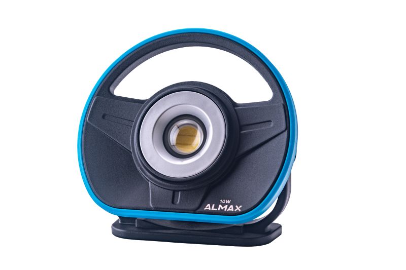 - Description: Almax Leopard cordless LED work light. A rugged and versatile portable light suitable for use in a wide range of work, recreation and home activities. • Two brightness settings: 500 & 1000 lumens • Dimmable: 100 to 1000 lumens • Run time: 3 hours at 1000 lumens, 5 hours at 500 lumens • Power: 10 Watt • 180°adjustable stand with easy hand hold • Magnetic holder for steel surfaces • Battery Li-ion 3.7V 4000mAh • USB-C output: 5V 1A240V • AC adaptor with USB fast charge port and cable included • Mounting stand available to hold 2 ALB-10 lights, Item Code ATR-21 • Water resistant: IP65 • Shock protection: IK07 • Charge time: 4 hours
