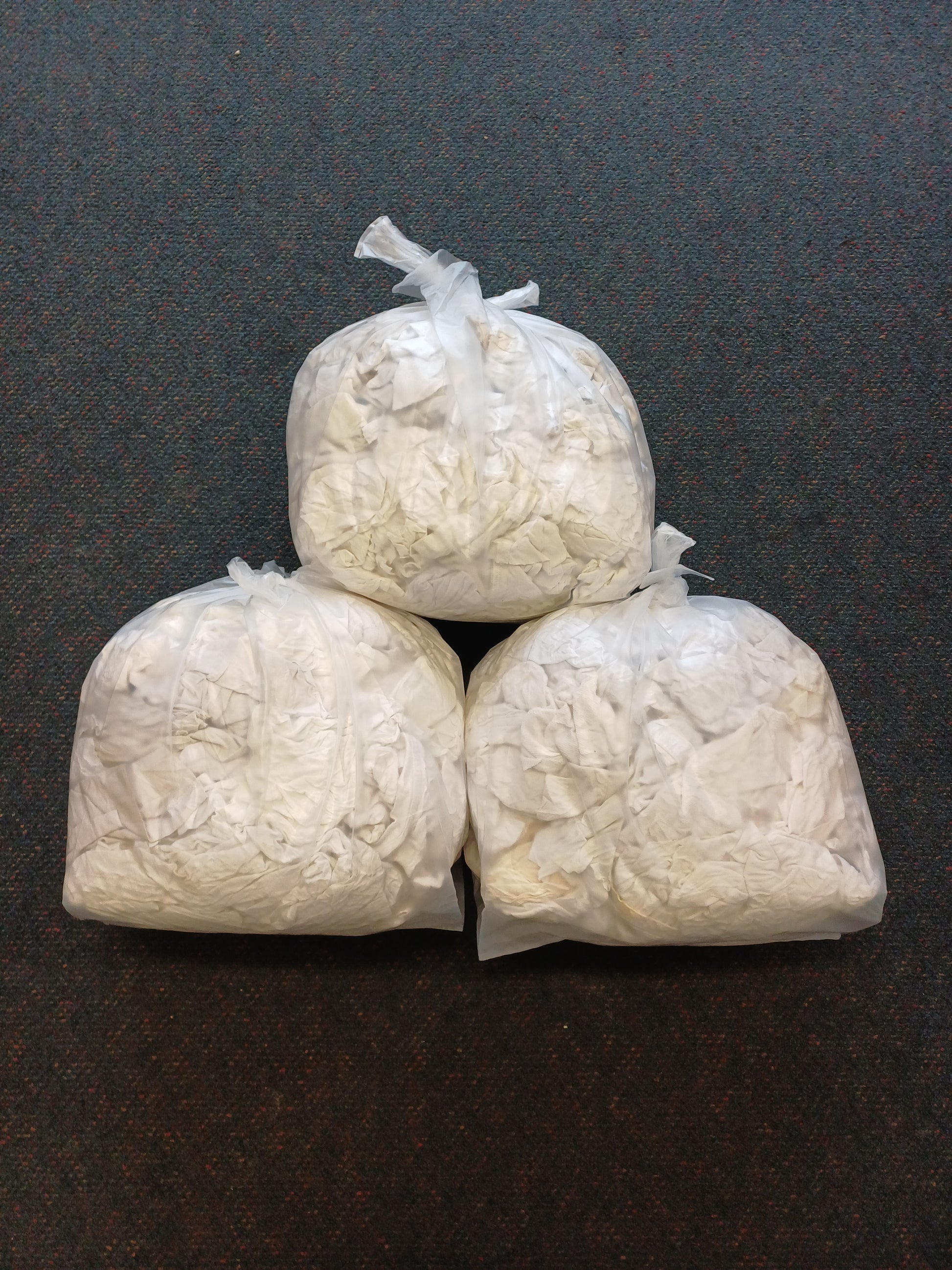 These white t-shirt rags are made from 100% Cotton which are Grade A. They are highly absorbent and durable, making them ideal for cleaning, polishing, or wiping surfaces. Used in a range of industries.