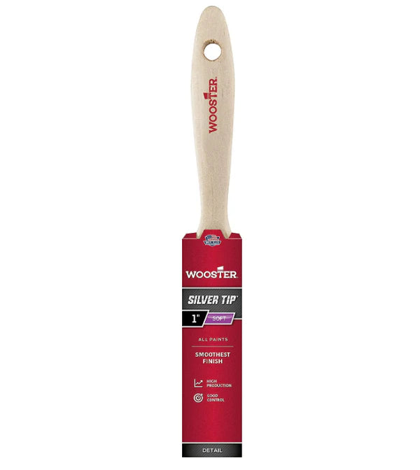 - Description: Wooster Silver Tip® V 25mm brush • Very soft bristles for feather stroke • Excellent levelling and smoothing • Stainless steel ferrule • Hardwood handle • Varnish flat brush
