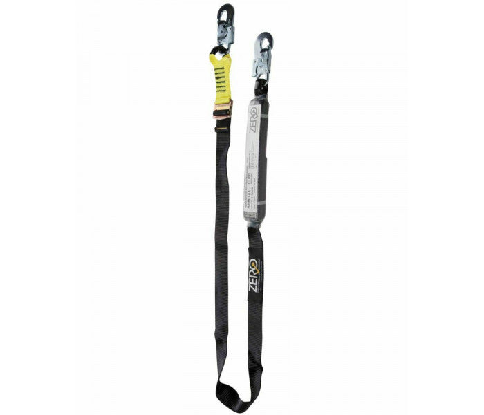 Remove the risk of falls with a shortened lanyard. Ideal for working in fall restraint. Recommended for Elevated work Platforms. Includes shock absorber. Adjustable length from 1.2m to 2m Material: Polyamide 100%